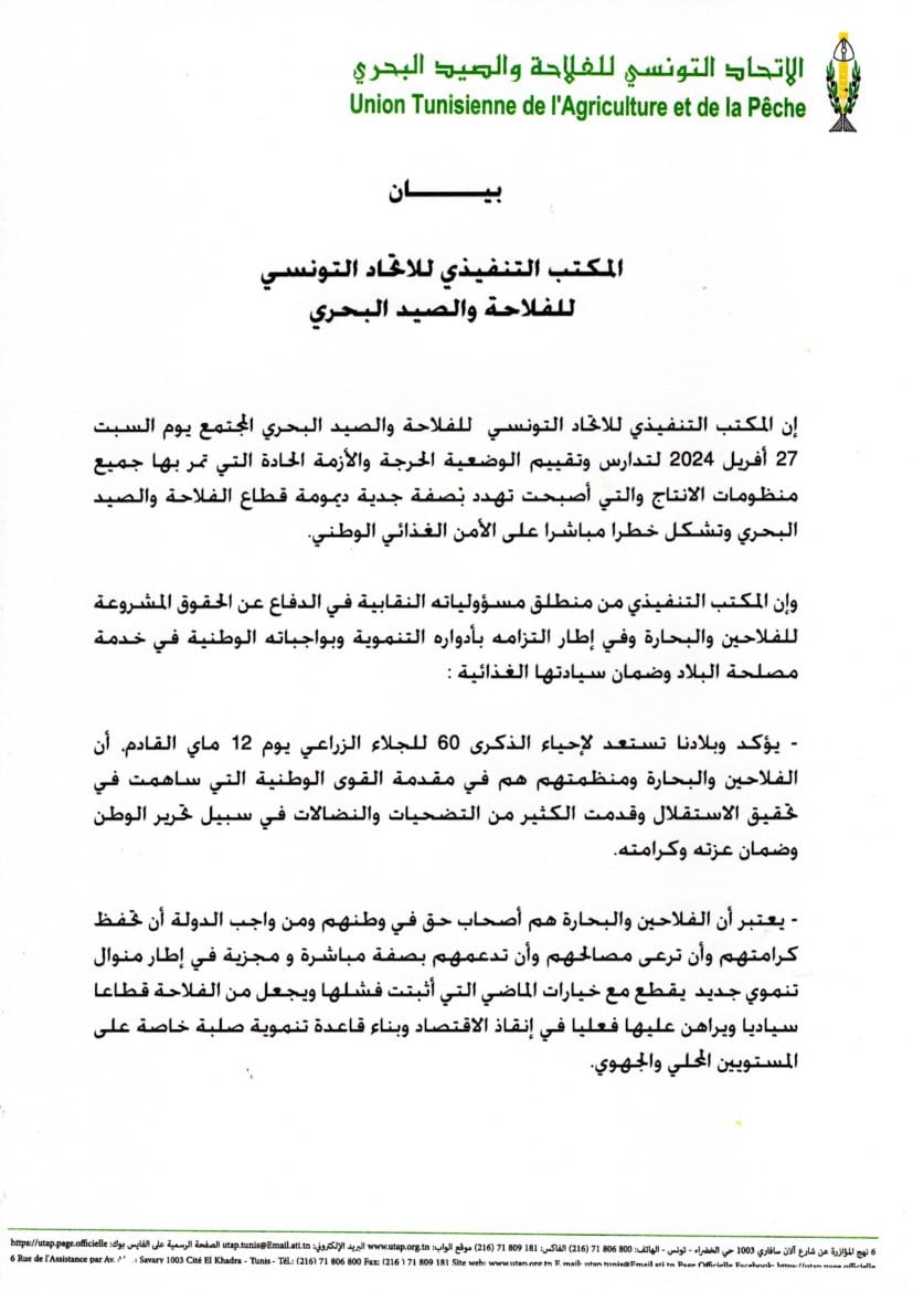 في إطار النهوض بصغار المربين ومزيد الإحاطة بهم وفي إطار بناء أفق جديدة لمنظومة الدواجن ، عقدت الجامعة الوطنية لمربي الدواجن اليوم الثلاثاء 22 أكتوبر 2024 جلسة عمل حول قطاع الدواجن بإشراف السيد معز بن زغدان رئيس الاتحاد التونسي لللفلاحة والصيد البحري.