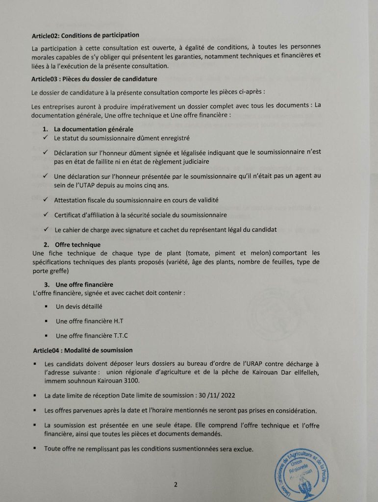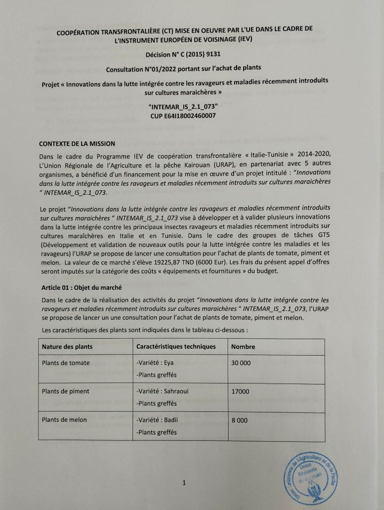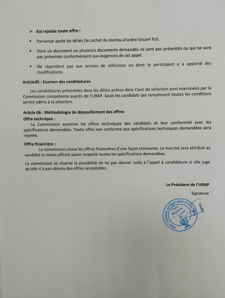 Avis public pour la selection d’un expert spécialise dans les domaines des études du marché et de monitorage phytopathologique